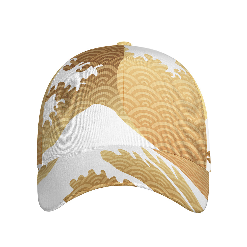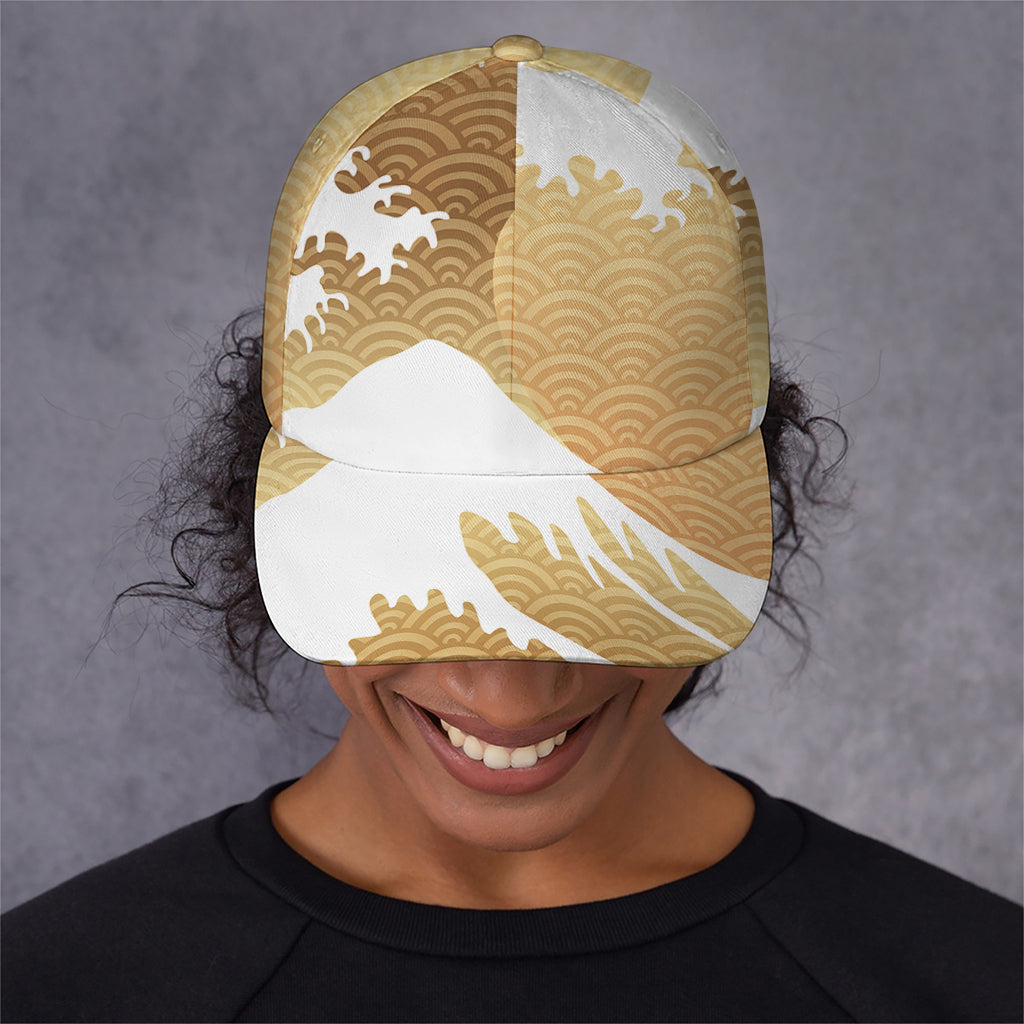 Top off your look with the stylish and functional Golden Kanagawa Wave Print Baseball Cap. Designed for comfort and durability, this baseball cap is the perfect accessory for casual outings, outdoor activities, or simply elevating your everyday style. Its sleek design and practical features make it a wardrobe essential for anyone who values both form and function.