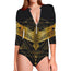 Golden Spiritual Bird Print Long Sleeve Swimsuit