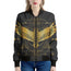 Make a bold statement with the sleek and stylish Golden Spiritual Bird Print Women's Bomber Jacket. This women's bomber jacket combines a classic silhouette with modern design, offering the perfect mix of fashion and functionality. Whether you're layering it for a chilly day or adding a finishing touch to your outfit, this jacket is designed to keep you comfortable while elevating your style.