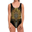 Golden Spiritual Lotus Print One Piece Swimsuit