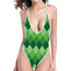 Grass Green Argyle Pattern Print One Piece High Cut Swimsuit
