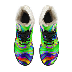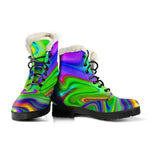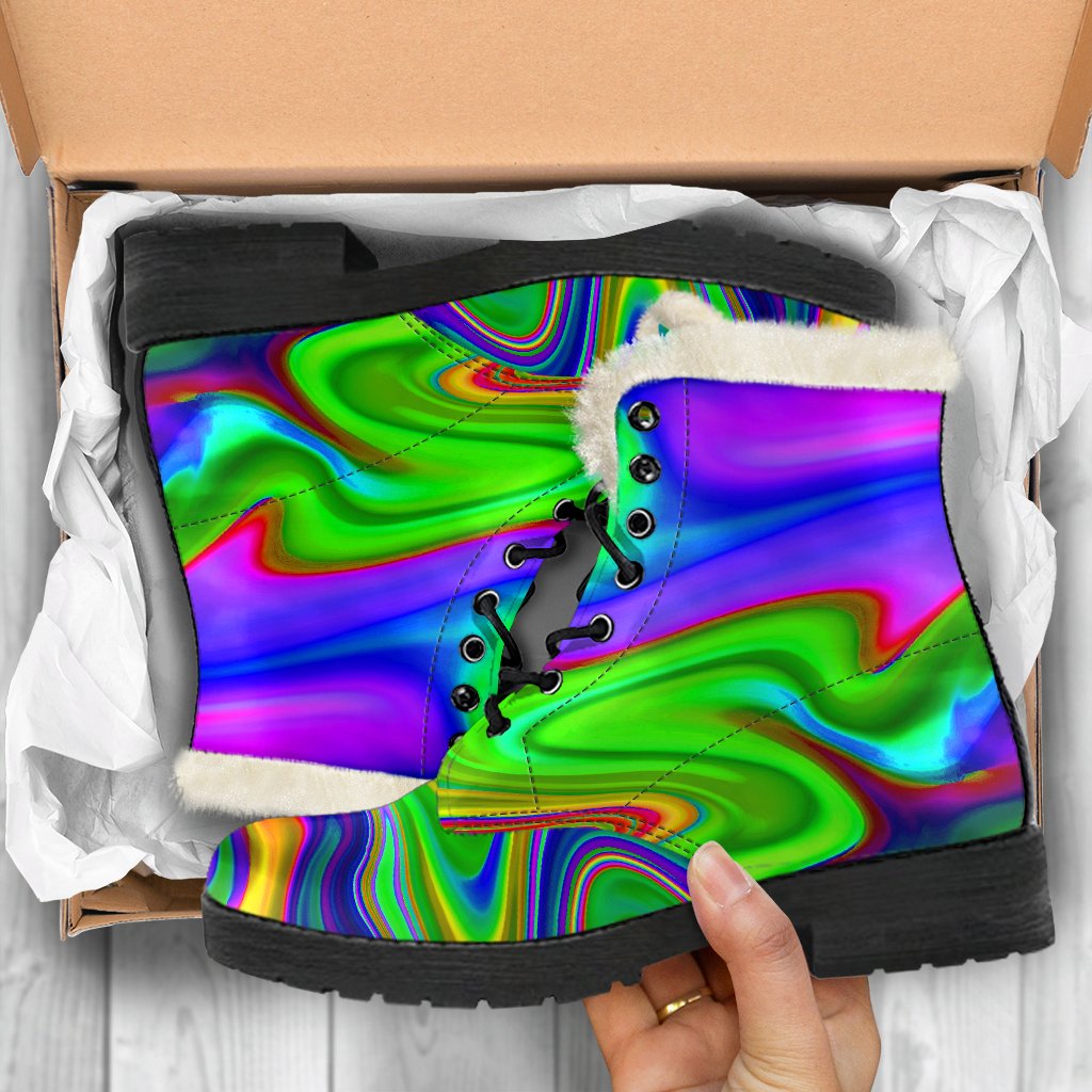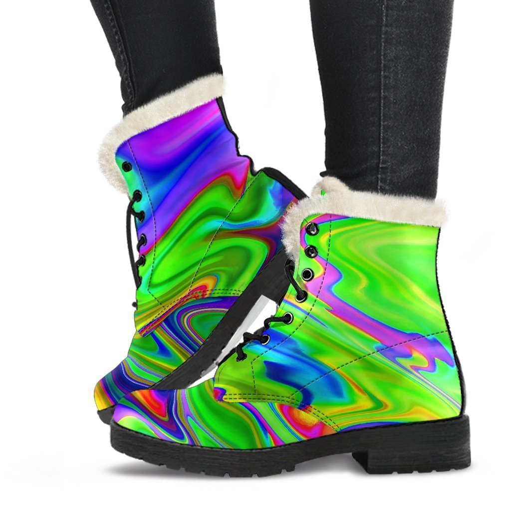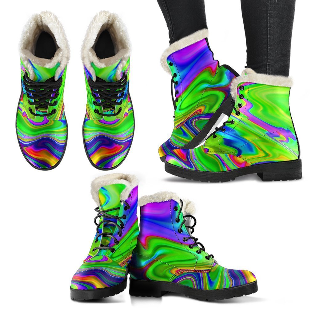 Combine cozy warmth with standout style in the versatile Green Abstract Liquid Trippy Print Faux Fur Leather Boots. Designed to keep you comfortable without compromising on fashion, these faux fur leather boots are a must-have addition to your footwear collection. Whether you’re braving chilly weather or adding an edgy touch to your outfit, these boots offer the perfect mix of practicality and personality.