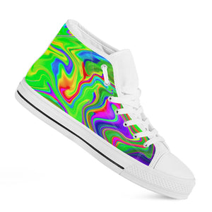 Are you looking for unique sneakers? Check our Green Abstract Liquid Trippy Print White High Top Sneakers on GearFrost. Our sneakers are handcrafted to the highest quality standards and made-to-order for you!