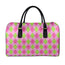 Green And Pink Argyle Pattern Print Leather Duffle Bag