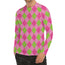 Green And Pink Argyle Pattern Print Men's Long Sleeve Rash Guard