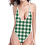 Green And White Buffalo Check Print One Piece High Cut Swimsuit