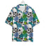 Green Blue Flowers Skull Pattern Print Rayon Hawaiian Shirt