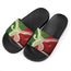 Are you looking for unique slides? Check our Green Bull And Red Bear Stock Print Black Slide Sandals on GearFrost. Our slides are handcrafted to the highest quality standards and made-to-order for you!