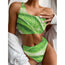 Green Cabbage Leaf Print One Shoulder Bikini Set
