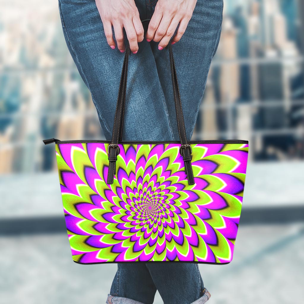 Are you looking for unique leather tote bags? Check our Green Expansion Moving Optical Illusion Leather Tote Bag With Zipper on GearFrost. Our tote bags are handcrafted to the highest quality standards and made-to-order for you!