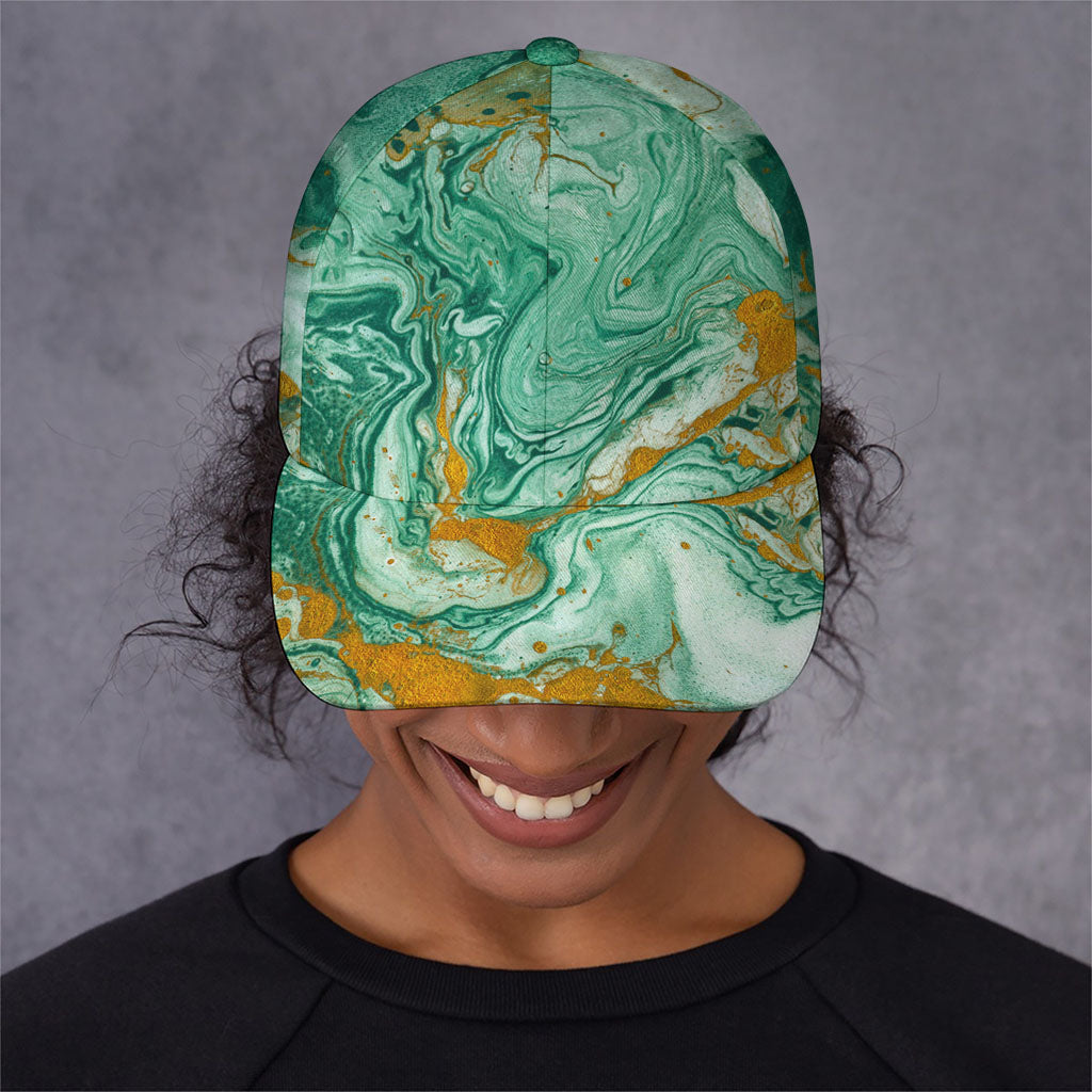 Top off your look with the stylish and functional Green Gold Liquid Marble Print Baseball Cap. Designed for comfort and durability, this baseball cap is the perfect accessory for casual outings, outdoor activities, or simply elevating your everyday style. Its sleek design and practical features make it a wardrobe essential for anyone who values both form and function.