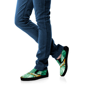 Green And Black Cannabis Leaf Print Black Slip On Sneakers