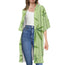 Green Hemp Leaves Pattern Print Open Front Beach Cover Up