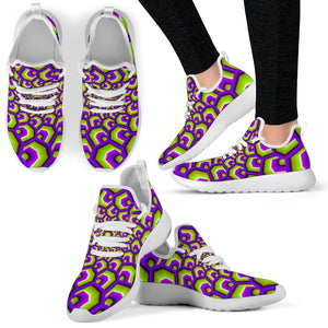 Yellow Spiral Moving Optical Illusion White Slip On Sneakers