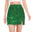 Green (NOT Real) Glitter Print Side Slit Mini Skirt