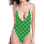 Green Plaid Saint Patrick's Day Print One Piece High Cut Swimsuit