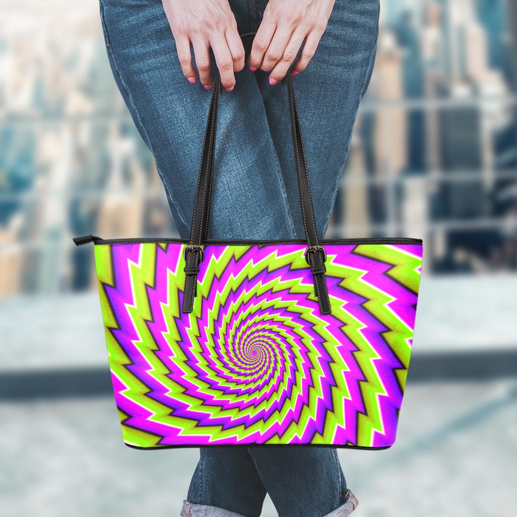 Are you looking for unique leather tote bags? Check our Green Twisted Moving Optical Illusion Leather Tote Bag With Zipper on GearFrost. Our tote bags are handcrafted to the highest quality standards and made-to-order for you!