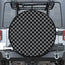 Grey And Black Checkered Pattern Print Leather Spare Tire Cover