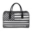 Grey And White American Flag Print Leather Duffle Bag