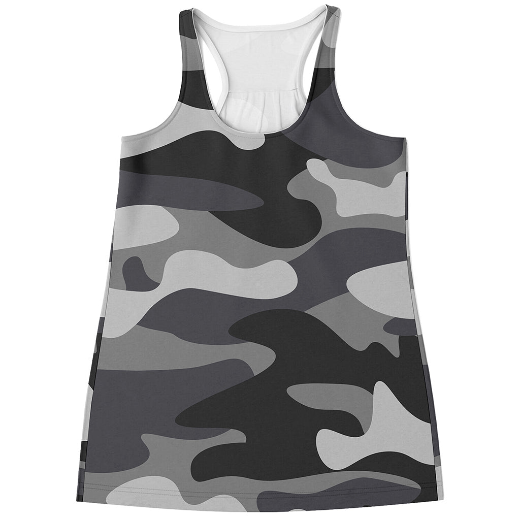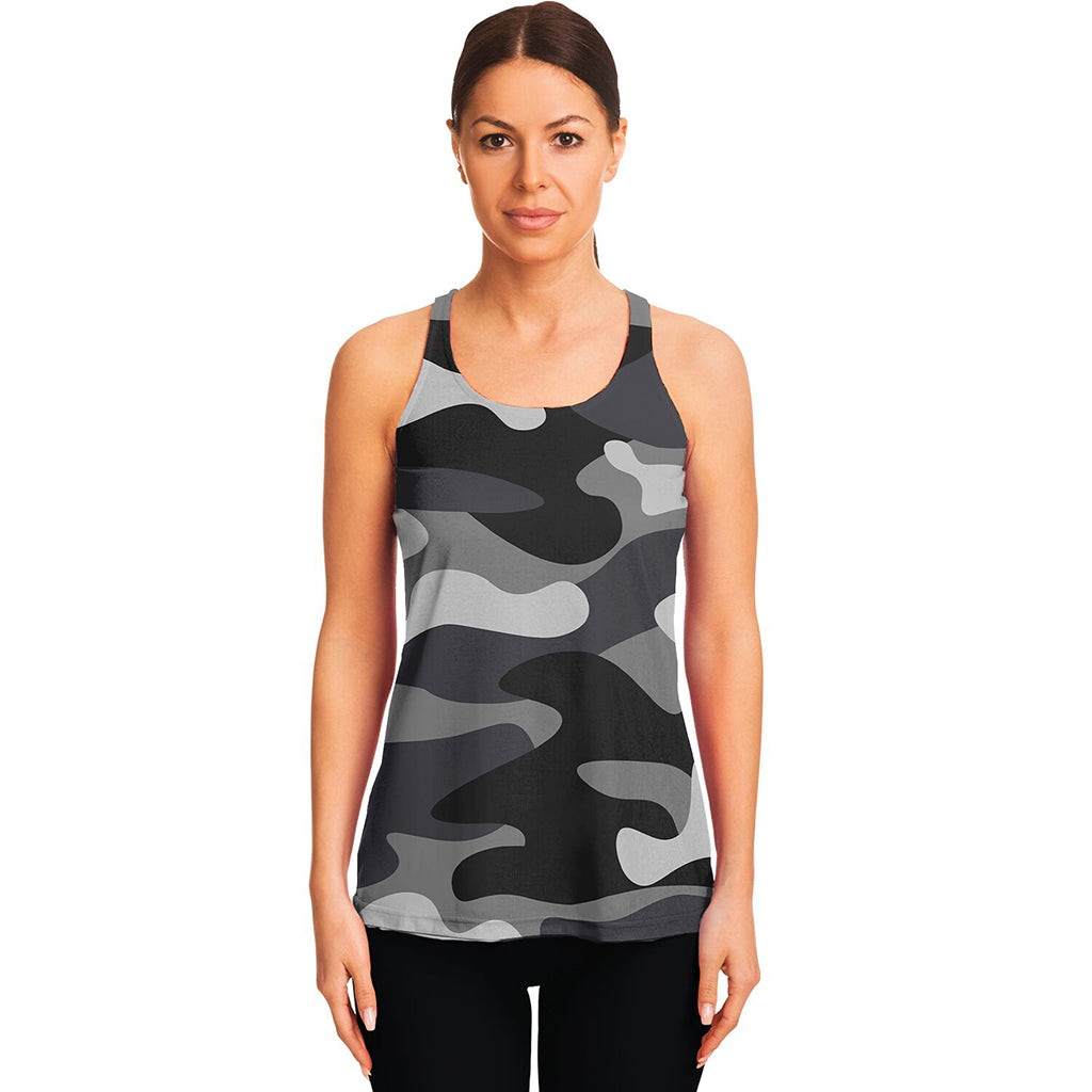 Stay cool and stylish with the versatile Grey And White Camouflage Print Women's Racerback Tank Top. Designed for women who prioritize comfort and functionality, this racerback tank top is the perfect addition to your active and casual wardrobe. Whether you’re working out, running errands, or relaxing at home, this tank top offers a sleek and flattering fit that keeps you looking great and feeling confident.