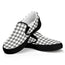 Are you looking for unique sneakers? Check our Grey And White Houndstooth Pattern Print Black Slip On Sneakers on GearFrost. Our sneakers are handcrafted to the highest quality standards and made-to-order for you!