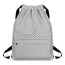 Made from durable polyester, the fabric feels comfortable to the touch and resists fading over time. The drawstring opening makes it easy to access your belongings quickly, while the spacious interior and handy front zipper pocket help keep items like water bottles, clothes, towels, books, and accessories neatly arranged. Reinforced corners add extra strength, giving this bag better durability compared to ordinary drawstring bags. Built with standard quality materials, it provides dependable functionality without unnecessary extras, and it folds flat when not in use for easy storage.