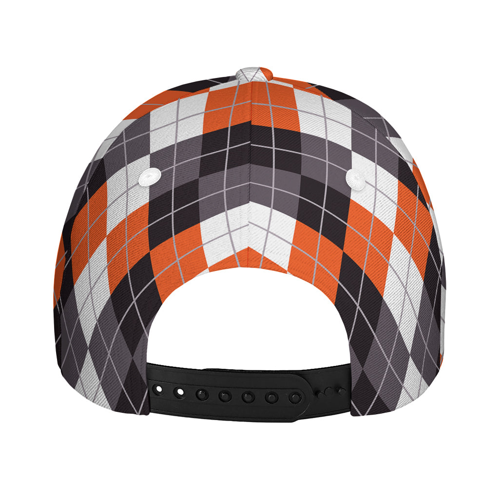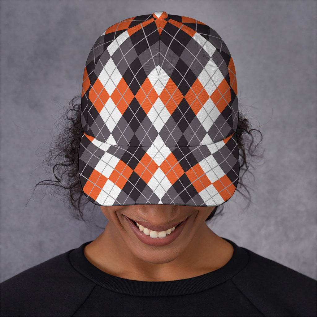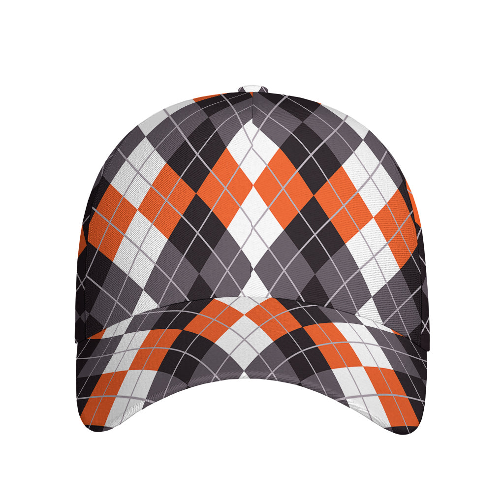 Top off your look with the stylish and functional Grey Black Orange And White Argyle Print Baseball Cap. Designed for comfort and durability, this baseball cap is the perfect accessory for casual outings, outdoor activities, or simply elevating your everyday style. Its sleek design and practical features make it a wardrobe essential for anyone who values both form and function.