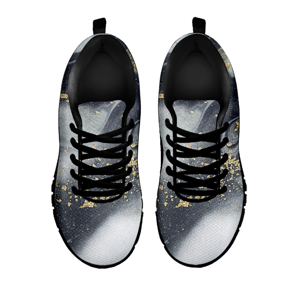 Are you looking for unique shoes? Check our Grey Gold Liquid Marble Print Black Running Shoes on GearFrost. Our shoes are handcrafted to the highest quality standards and made-to-order for you!
