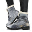 Combine cozy warmth with standout style in the versatile Grey Gold Liquid Marble Print Faux Fur Leather Boots. Designed to keep you comfortable without compromising on fashion, these faux fur leather boots are a must-have addition to your footwear collection. Whether you’re braving chilly weather or adding an edgy touch to your outfit, these boots offer the perfect mix of practicality and personality.
