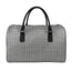 Grey Windowpane Pattern Print Leather Duffel Bag