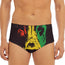 Stay confident at the pool or beach with the Grunge Rasta Lion Print Men's Triangle Swim Briefs. Designed with a blend of 88% polyester and 12% spandex, these swim briefs provide comfort, stretch, and support for everyday swimwear use. The smooth fabric and regular fit make them practical for both swimming and lounging.