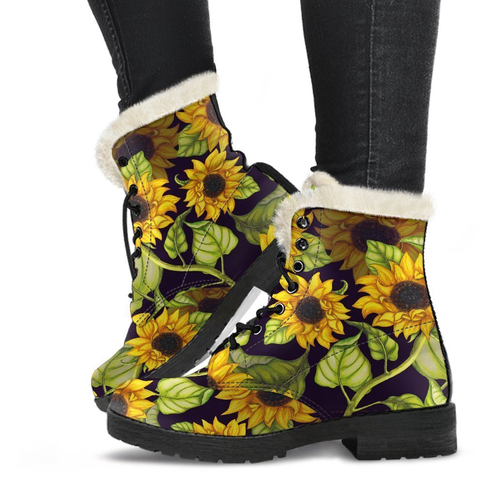 Combine cozy warmth with standout style in the versatile Hand Drawn Sunflower Pattern Print Faux Fur Leather Boots. Designed to keep you comfortable without compromising on fashion, these faux fur leather boots are a must-have addition to your footwear collection. Whether you’re braving chilly weather or adding an edgy touch to your outfit, these boots offer the perfect mix of practicality and personality.