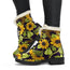 Sugar Skull Pattern Print Faux Fur Leather Boots