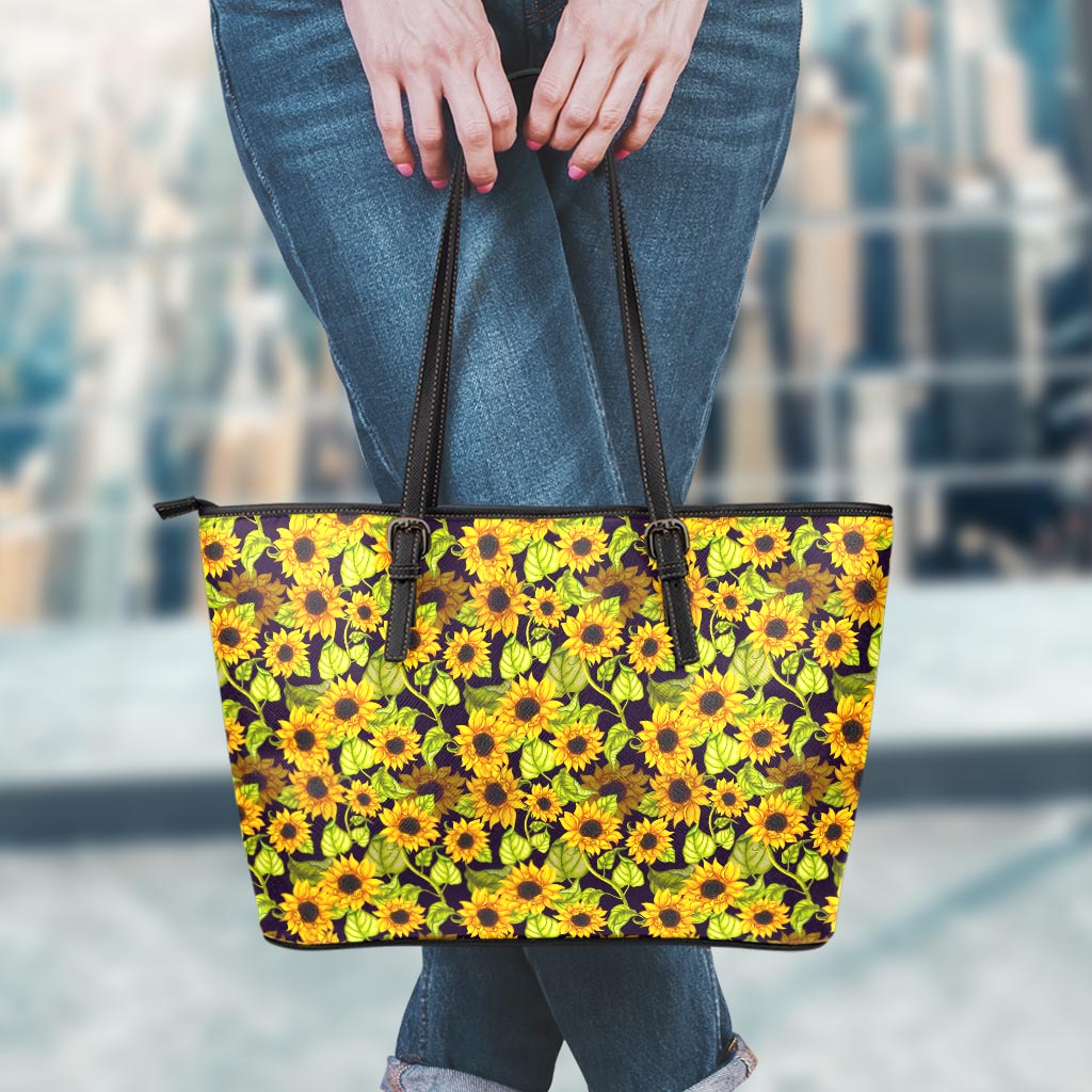 Are you looking for unique leather tote bags? Check our Hand Drawn Sunflower Pattern Print Leather Tote Bag With Zipper on GearFrost. Our tote bags are handcrafted to the highest quality standards and made-to-order for you!