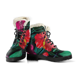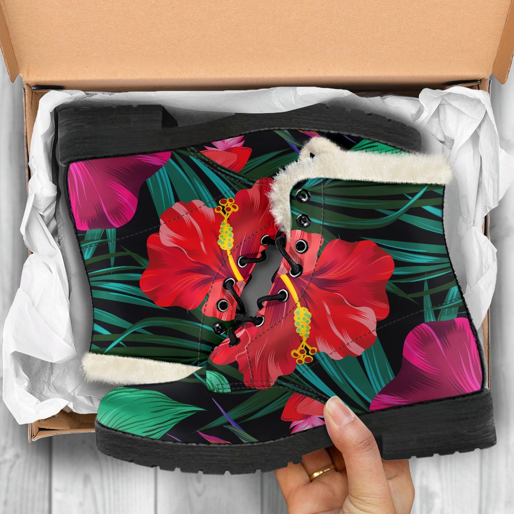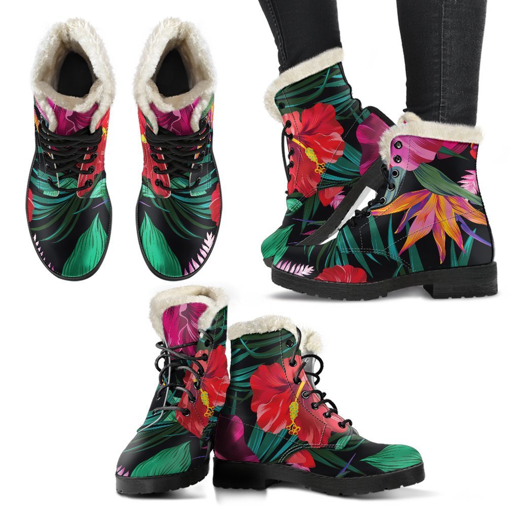 Combine cozy warmth with standout style in the versatile Hawaii Floral Flowers Pattern Print Faux Fur Leather Boots. Designed to keep you comfortable without compromising on fashion, these faux fur leather boots are a must-have addition to your footwear collection. Whether you’re braving chilly weather or adding an edgy touch to your outfit, these boots offer the perfect mix of practicality and personality.