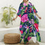 Hawaiian Tropical Birds Pattern Print Silk V-Neck Kaftan Dress