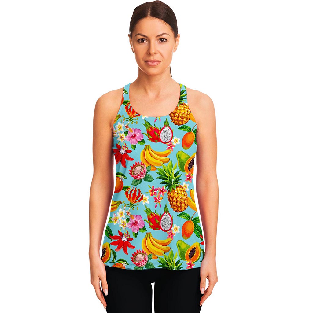 Stay cool and stylish with the versatile Hawaiian Tropical Fruits Pattern Print Women's Racerback Tank Top. Designed for women who prioritize comfort and functionality, this racerback tank top is the perfect addition to your active and casual wardrobe. Whether you’re working out, running errands, or relaxing at home, this tank top offers a sleek and flattering fit that keeps you looking great and feeling confident.