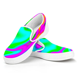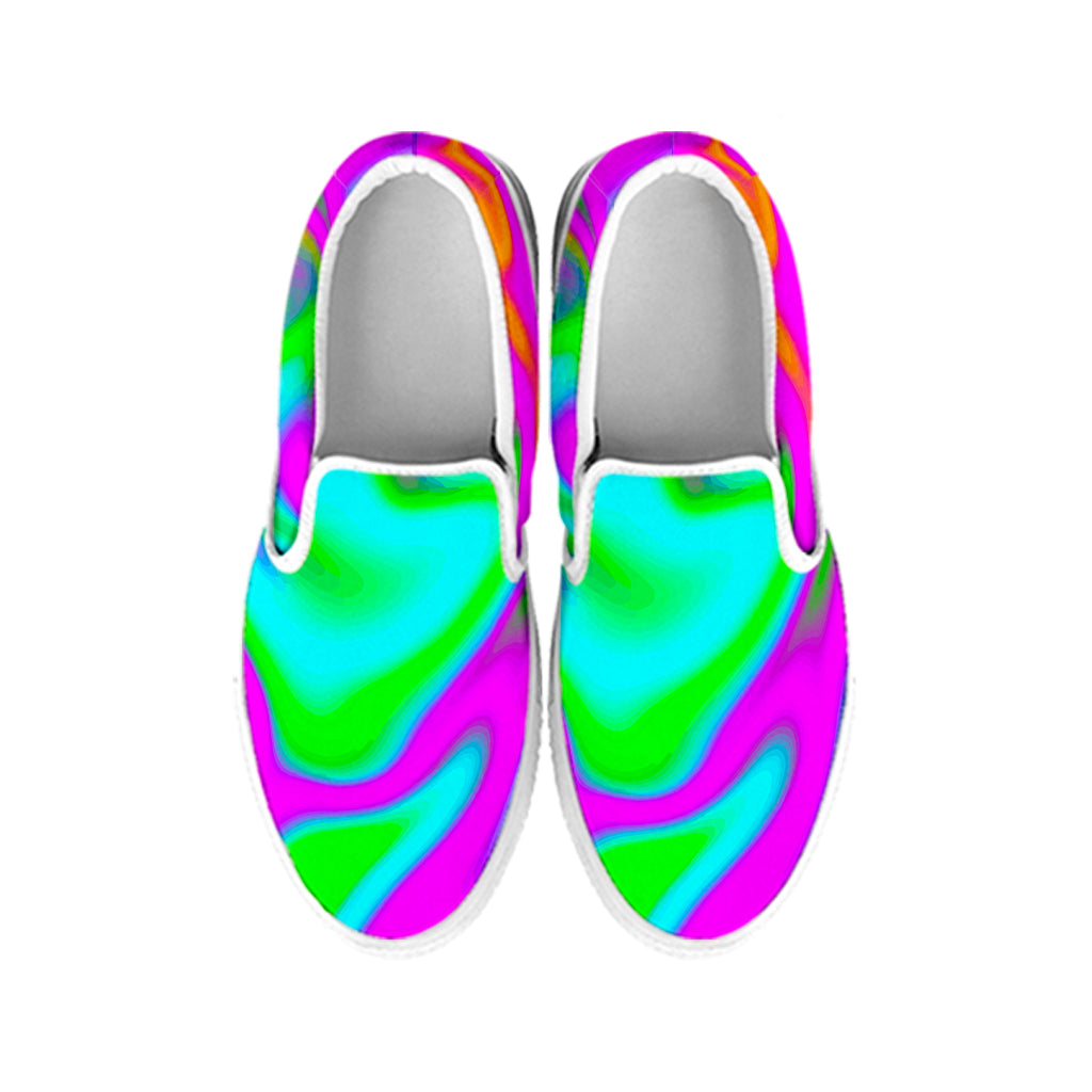 Step into effortless style and unmatched comfort with the versatile Holographic Neon Liquid Trippy Print White Slip On Sneakers. Designed for those who value convenience and unique design, these slip-on sneakers are the perfect addition to your footwear collection. Whether you're heading out for a casual outing, running errands, or simply enjoying a laid-back day, these sneakers are built to complement your lifestyle with ease and flair.