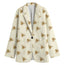 The button closure and side pockets add both style and practicality, providing secure storage for small essentials like keys or a phone. Whether you’re in a professional setting or enjoying a night out, these features make the blazer as functional as it is fashionable. The stitching, available in black or white, is thoughtfully matched to the design, ensuring a polished and cohesive look.