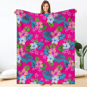 Hot Pink Aloha Hibiscus Pattern Print Blanket