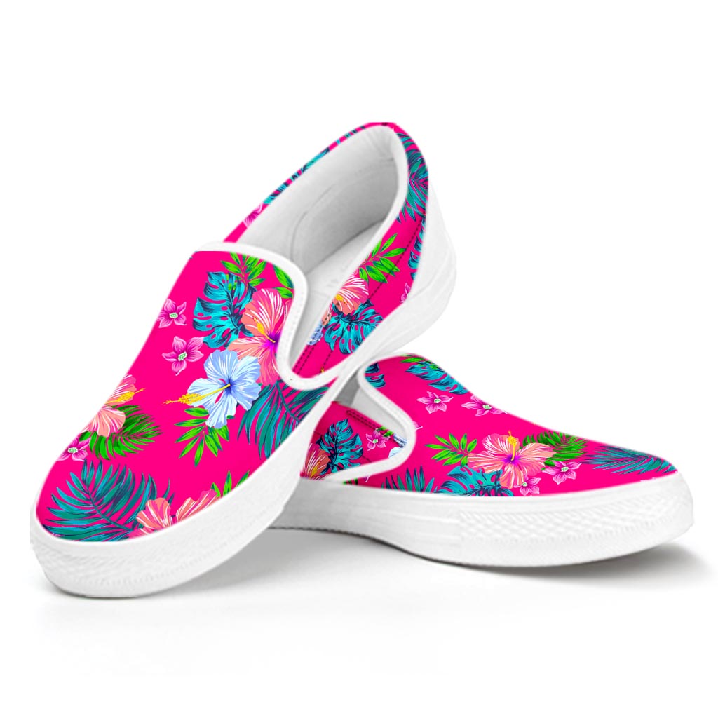 Step into effortless style and unmatched comfort with the versatile Hot Pink Aloha Hibiscus Pattern Print White Slip On Sneakers. Designed for those who value convenience and unique design, these slip-on sneakers are the perfect addition to your footwear collection. Whether you're heading out for a casual outing, running errands, or simply enjoying a laid-back day, these sneakers are built to complement your lifestyle with ease and flair.