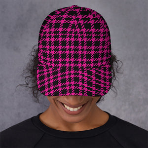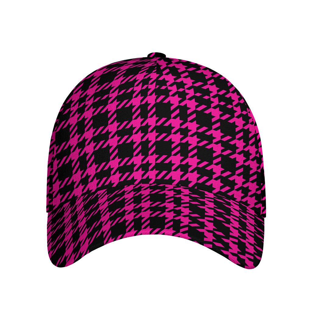Top off your look with the stylish and functional Hot Pink And Black Houndstooth Print Baseball Cap. Designed for comfort and durability, this baseball cap is the perfect accessory for casual outings, outdoor activities, or simply elevating your everyday style. Its sleek design and practical features make it a wardrobe essential for anyone who values both form and function.