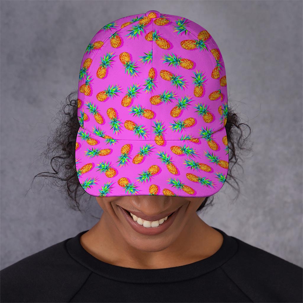 Top off your look with the stylish and functional Hot Pink Pineapple Pattern Print Baseball Cap. Designed for comfort and durability, this baseball cap is the perfect accessory for casual outings, outdoor activities, or simply elevating your everyday style. Its sleek design and practical features make it a wardrobe essential for anyone who values both form and function.