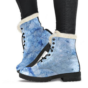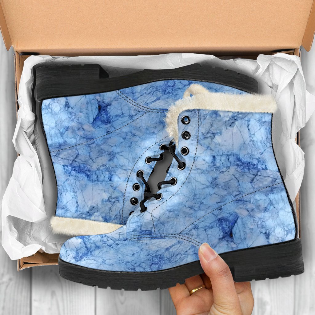 Combine cozy warmth with standout style in the versatile Ice Blue Marble Print Faux Fur Leather Boots. Designed to keep you comfortable without compromising on fashion, these faux fur leather boots are a must-have addition to your footwear collection. Whether you’re braving chilly weather or adding an edgy touch to your outfit, these boots offer the perfect mix of practicality and personality.
