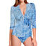 Ice Blue Marble Print Long Sleeve Swimsuit