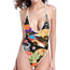 Japanese Hand Fan Pattern Print High Cut One Piece Swimsuit