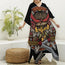 Japanese Samurai Mask Print Silk V-Neck Kaftan Dress