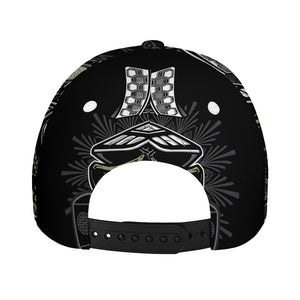 Yellow And Black Checkered Pattern Print Baseball Cap