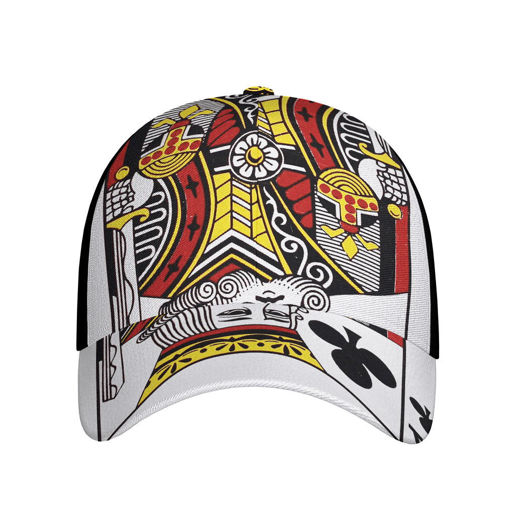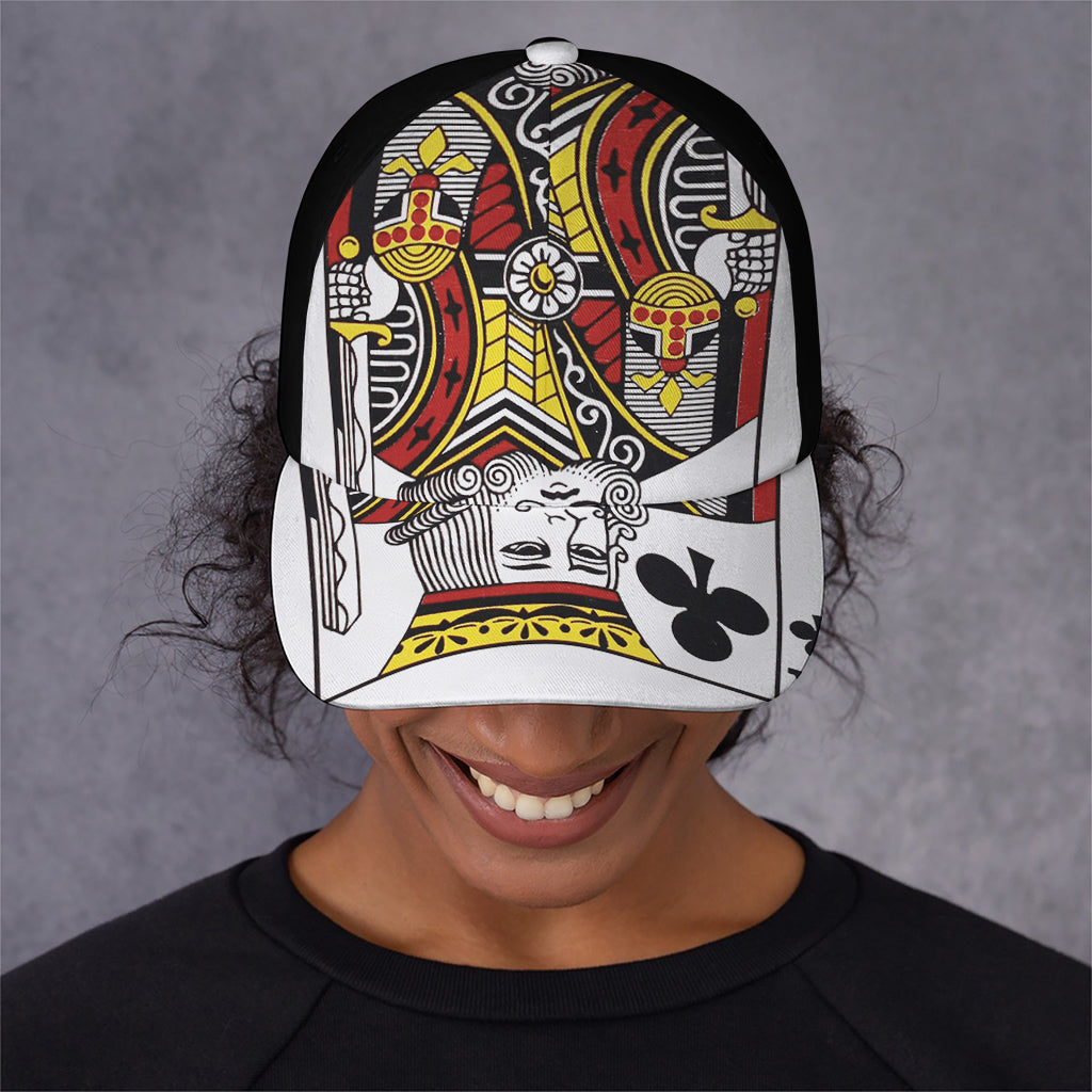 Top off your look with the stylish and functional King Of Clubs Playing Card Print Baseball Cap. Designed for comfort and durability, this baseball cap is the perfect accessory for casual outings, outdoor activities, or simply elevating your everyday style. Its sleek design and practical features make it a wardrobe essential for anyone who values both form and function.