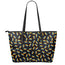 Black Sunflower Pattern Print Leather Tote Bag With Zipper